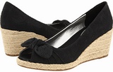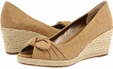 Style Description: Bandolino Dyani are sexy and attractive wedge style shoes which can be used for any event. These shoes can be used for casual hangout and for parties. They have cushiony interior which make them very comfortable to wear. The upper is made from the super soft textile which can be cleaned very easily. The upper has the peep toe silhouette which allows you to show you pedicure. The slip on construction of these shoes makes them very easy to wear for the busy person on the go. The knot detail at the vamp enhances the beautiful looks of these shoes. The footbed is cushioned to provide comfort all day long. The outsole is durable and provide non-skid ride. The outsole is wrapped with the braided rope which gives it unique and outstanding looks. The wedge style heel is 2 ¾ inches high with 5/8 inches high platform. It weighs 10 ½ ounces as per size 8. You can find this style in these colors: Light Bronze Fabric and Black Fabric.