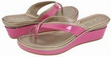 Style Description: This summer you will sing in joy and comfort with the Cole Haan Air Laetitia Thong. These cute and comfortable thongs are perfect treat for this season. They are perfect for indoor as well as outdoor use. They can be used with summer dress, jeans, skirt or just about anything you like. The upper is available in patent leather and leather. The upper has the thong style construction and slip on construction which allows effortless on and off wearing which makes then perfect for indoor use as well. The lining of leather keeps the foot in the comfortable surroundings and also wicks away the moisture away from it. The footbed is cushioned for the great comfort in each step and it has the NIKE AIR® technology which enhances the comfort level and it introduces shock absorption and support. The outsole is made from the rubber which is textured and it makes these thongs durable and reliable. The wedge style heel is 2 inches high with ¾ inches of platform. It weighs 9 ounces as per size 6.5. Colors: Cherry Leather/ Vintage Silver and Vintage Silver/ Fuschia Patent.