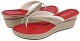 Style Description: This summer you will sing in joy and comfort with the Cole Haan Air Laetitia Thong. These cute and comfortable thongs are perfect treat for this season. They are perfect for indoor as well as outdoor use. They can be used with summer dress, jeans, skirt or just about anything you like. The upper is available in patent leather and leather. The upper has the thong style construction and slip on construction which allows effortless on and off wearing which makes then perfect for indoor use as well. The lining of leather keeps the foot in the comfortable surroundings and also wicks away the moisture away from it. The footbed is cushioned for the great comfort in each step and it has the NIKE AIR® technology which enhances the comfort level and it introduces shock absorption and support. The outsole is made from the rubber which is textured and it makes these thongs durable and reliable. The wedge style heel is 2 inches high with ¾ inches of platform. It weighs 9 ounces as per size 6.5. Colors: Cherry Leather/ Vintage Silver and Vintage Silver/ Fuschia Patent.