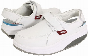Style Description: MBT Sapatu are elegant and sporty sandals which can be used at office as well as for hanging out. These sandals have the latest technologies used in the construction which makes it durable, extraordinary comfortable and good looking. The midsole is made from the polyurethane and it has the unique design which makes the multiple idle muscles of your body to work in order to provide the exercising effect on you overall body. The interior has the Masai Sensor (Masai Barefoot Technology®) which provides the walk on the soft moss feel which is supremely comfortable. The upper is made from the high quality leather which provides breathability and it is also very easy to maintain. The upper also features two hook and loop closures at the instep and at ankle which let you customize the fit. The sock liner is made from the foam and Dry & Cool mesh which provides super comfortable surrounding and it also makes your feet fresh and dry by wicking the moisture away from them. The footbed is made from the perforated EVA which absorbs the shock to ensure comfortable ride and it also prevents the foot odor with the antibacterial treatment. The glass fiber and TPU combination is used to make the shank of the shoe which ensures the sole stays firm and durable. The outsole is made from the rubber which ensures traction and durability for long time usage. It weighs 16 ounces as per size 6.5. Colors: White.