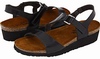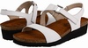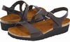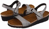 Style Description: Naot Footwear Pamela are elegant sandals which have attractive and decent looks. These sandals belong to the Elegant Collection of Naot®. They have lightweight and long lasting construction so you can walk in style for years to come. They can be used with the casual outfit to turn many heads around. The upper is made from the premium quality leather which can be cleaned to give these sandals out of the box looks. The upper has the goring at the side along with hook and loop closure at the instep which allows secures and customized fastening and it also enables the easy on and off wearing. The sock liner is made from the leather which has the ability to keep the feet dry and healthy by wicking the moisture away from them. The footbed is made from the latex and cork which provide superb shocks absorption to minimize the stress on the spine and legs. This footbed molds as per the shape of your foot to make custom fit. The footbed is wrapped with the suede which is super soft and gives you the messaging effect. The outsole is made from the synthetic which is lightweight and flexible. This outsole is also long lasting and provides grip on various surfaces. Its heel is 1 ¼ inches high and it weighs just 6 ounces as per size 7 which is lighter than your standard sandal. You can find this style in these colors: White Leather, Gray Lizard Leather, Espresso Leather, Brown Lizard Leather and Black Madras Leather.