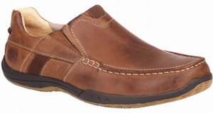 Featured Review: (by Rick), I bought these shoes for use at work. I am a restaurant manager and could no longer stand the typical slip-resistant shoes that were first of all not comfortable after 10 hrs of 95% standing on my feet, second of all not very stylish in any way. So I chose these because they are brown, not typical slip-resistant shoe color and second they were slip-on shoes. Although they are boat shoes the tread was not very stable on wet or greasy floors. I did modify them to comply with company guidelines. AWESOME!! I know that Timberland has a line of slip-resistant shoes, but yet again pretty clunky and mostly black. I prefer comfort and these shoes are not only taking a beating and staining I can stand 10 hrs and not feel like if I sit down for 10 mins and then try to get up again my feet and legs don’t complain. PS If i could post pictures of 8 months of use I would. Still look and work great!