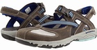 Style Description: Merrell Cambrian Emme are the sporty sandals to keep your feet safe, comfortable and relaxed all the time. These lightweight shoes have the durable and long lasting construction which allows you to use them for years to come. They can be used outdoor and their water proof construction allows you to use them in water as well without damaging the shoe. The upper is made from the combination of textile and leather which are water resistant. The toe room allows you good toe wiggle. The upper has the quick release fastening system which allows you to wear these shoes quickly and it also provides personalized fit with the adjustable strap. The lining is made from the Neoprene which dries quickly and it also provides cushioned surrounding for keep your feet comfortable. The interior has the Aegis® antimicrobial treatment which prevent foot odor. The footbed is made from the EVA which has ability to absorb shocks to enhance the comfort and it has small holes in it which helps in draining the water quickly. The outsole is made from the Merrell’s famous Vibram® rubber which provides excellent traction on any surface and it is durable to allow long time wearing. This outsole also delivers magnificent performance regardless of trail, stream or street. It weighs just 8 ounces as per size 8. You can find this style in these colors: Oyster, Dark Earth and Black.